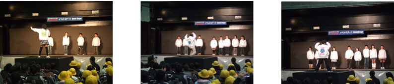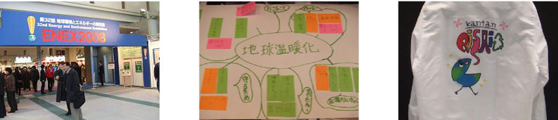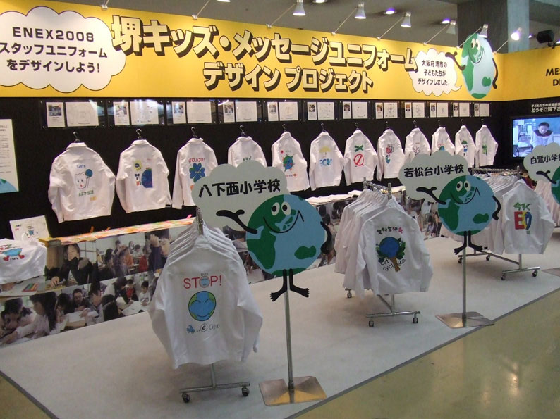 | これは、大阪府堺市の子ども達がメッセージユニフォームをデザインするというプロジェクトで、その代表作品を展示したブースです。 子ども達の表現は、素直でパワフル!!ボクがレクチャーしているのにボクが勉強させられたって感じのプロジェクトでした。 |