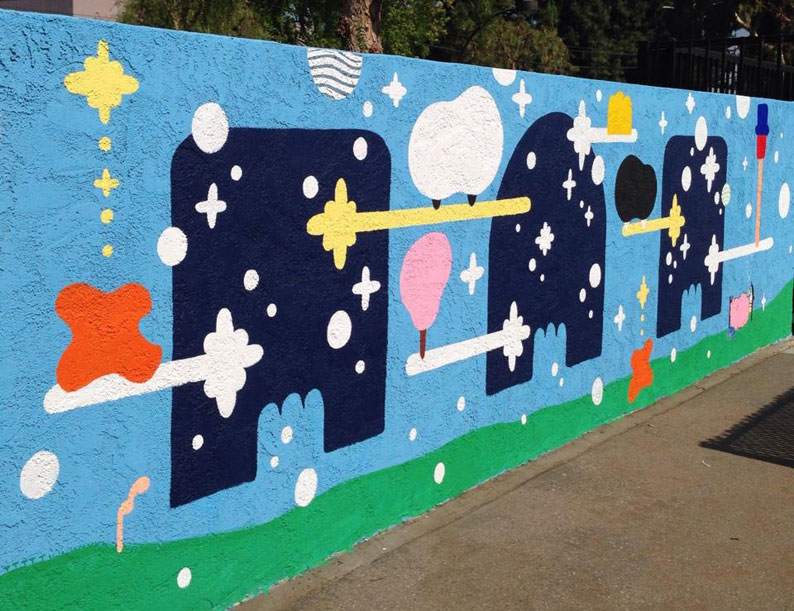 今回は、校庭の壁にいろんなアーティストが2日間でウォールペイントするという、とてもハッピーなプロジェクトでした。